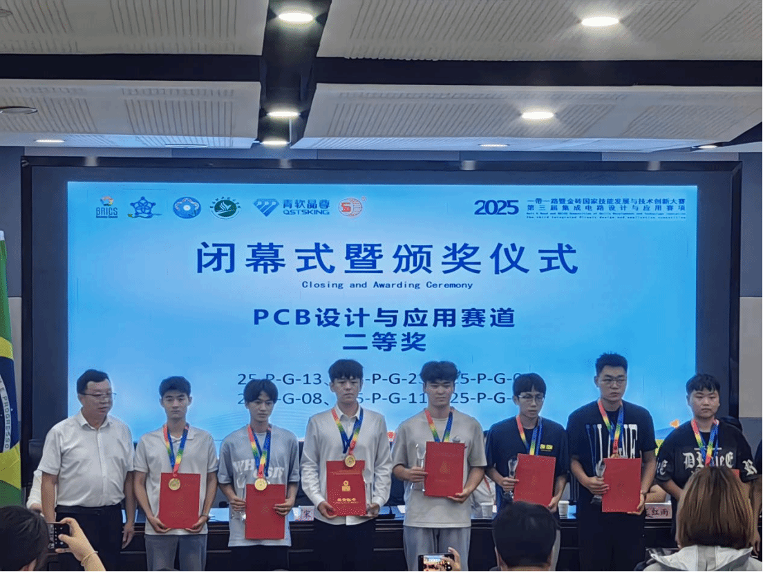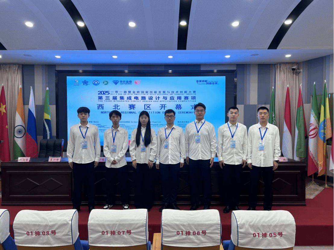 我系赵国平和李雄伟两位老师指导的学生团队在2025年第三届一带一路暨金砖国家技能发展与技术创新大赛中荣获“集成电路设计与应用赛项(西北赛区)"省级二等奖,并将于2025年10月代表西北赛区参加举办的国赛。