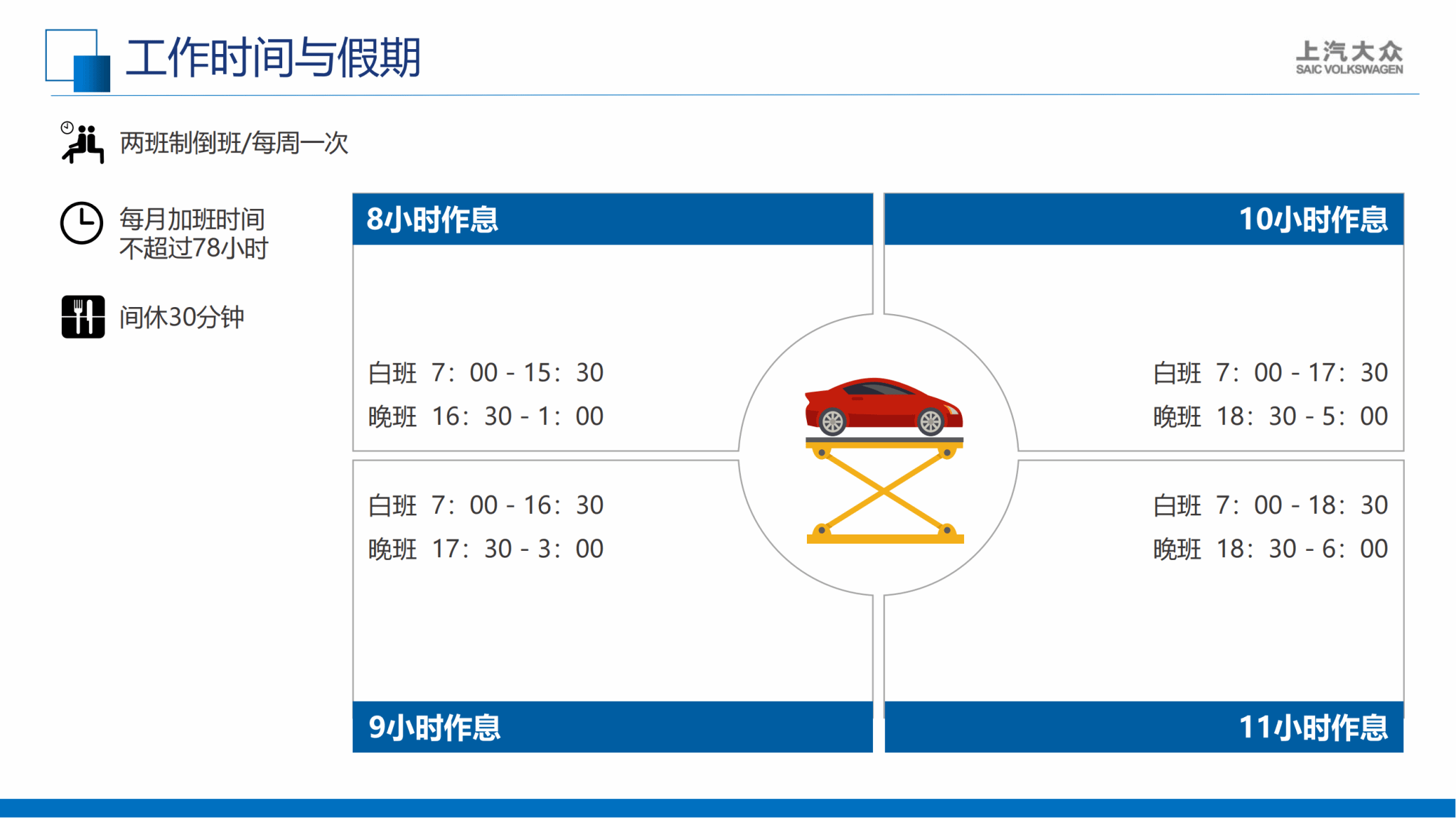 4)入职满3个月,报销车补400元;体检费实报实销:和上汽大众签订三方定岗实习协议。