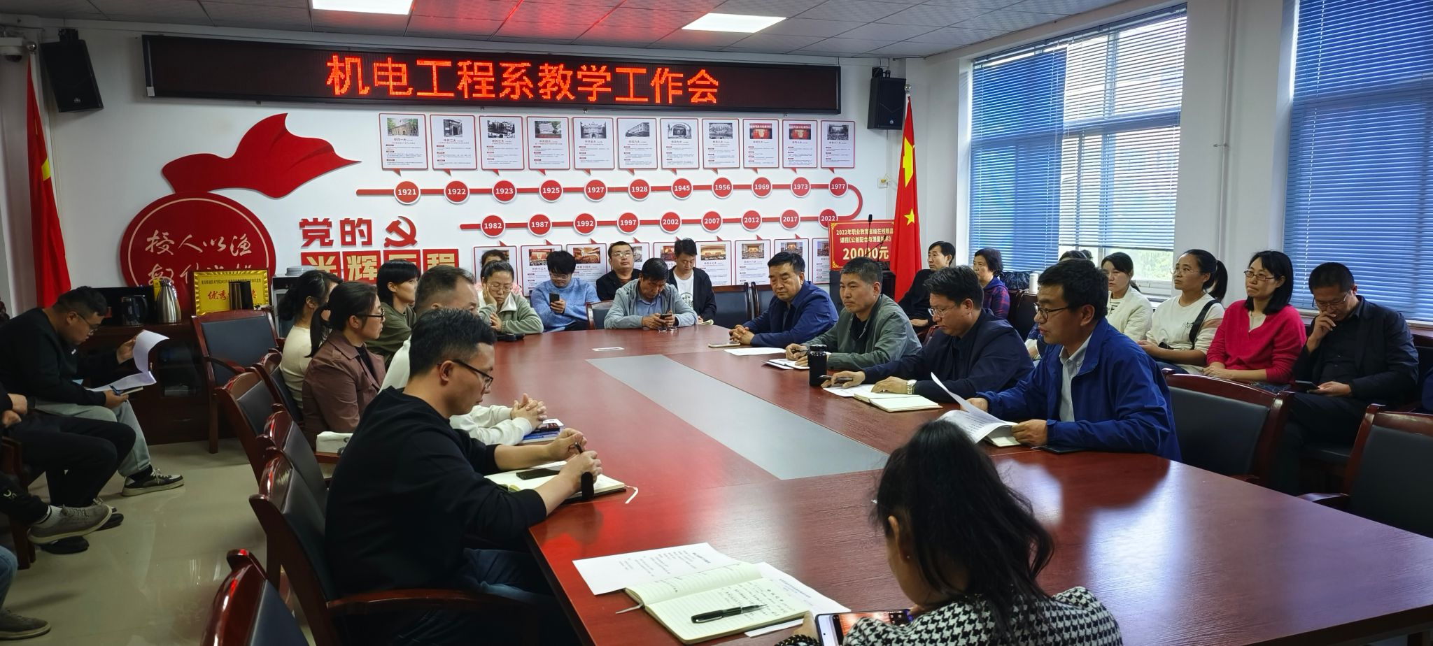 10月9日,机电工程系在12号教学楼402会议室召开了教学工作会议,系部全体教学管理人员、专兼职教师、实训室管理员参加会议。