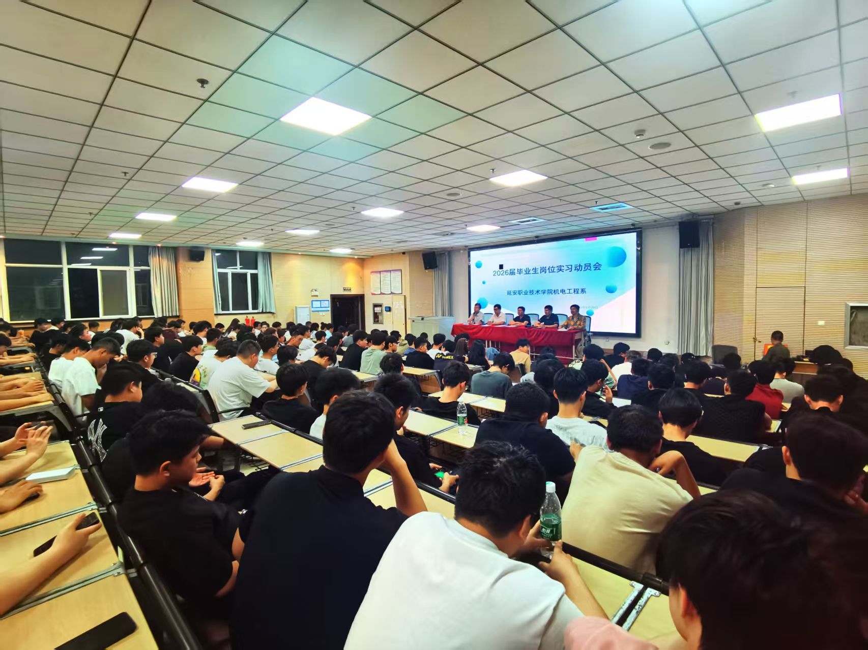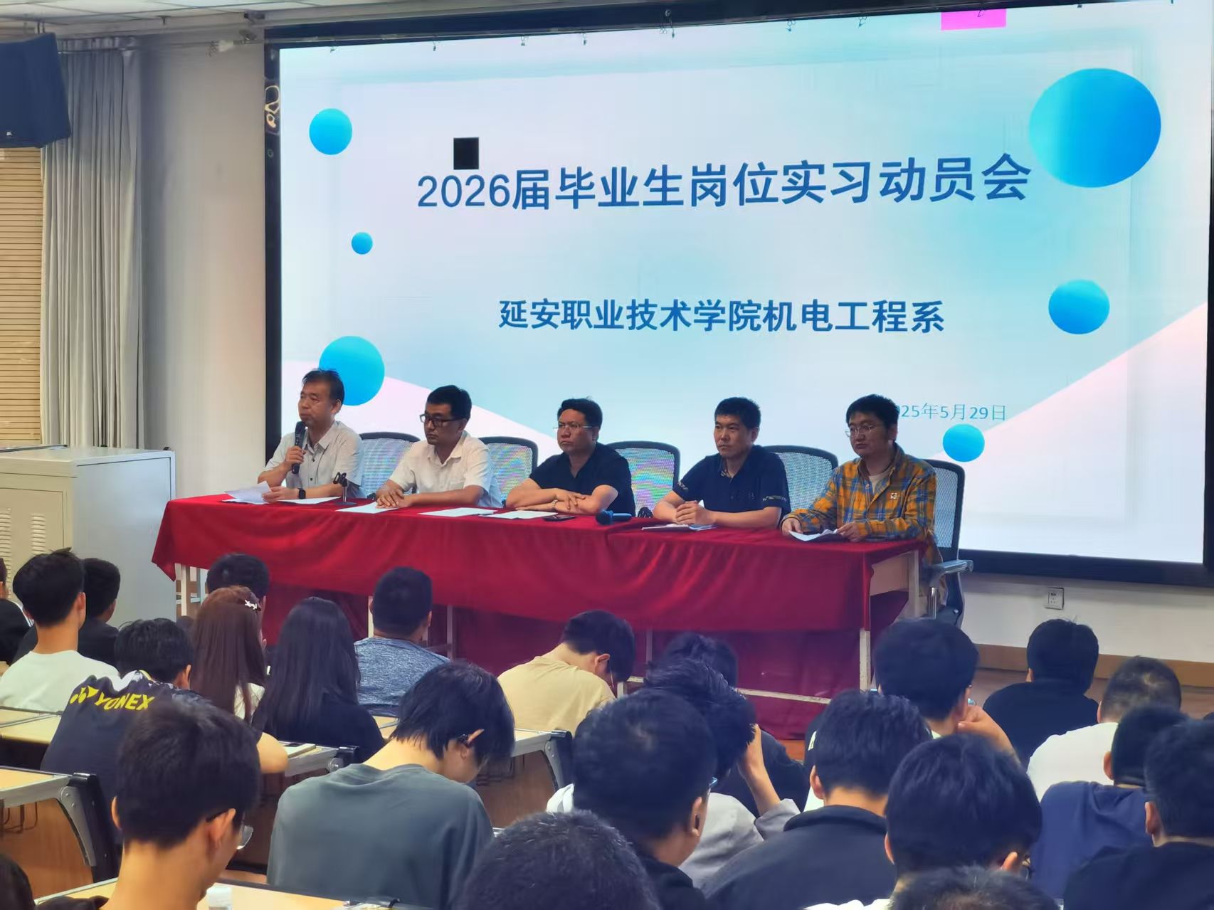 为强化岗位实习管理,提升人才与就业质量,输送德技双修高技能人才,2025年5月29日,机电工程系召开了2026届毕业生岗位实习动员大会,系副科级以上干部、各教研室主任、全体毕业生及相关辅导员参会。