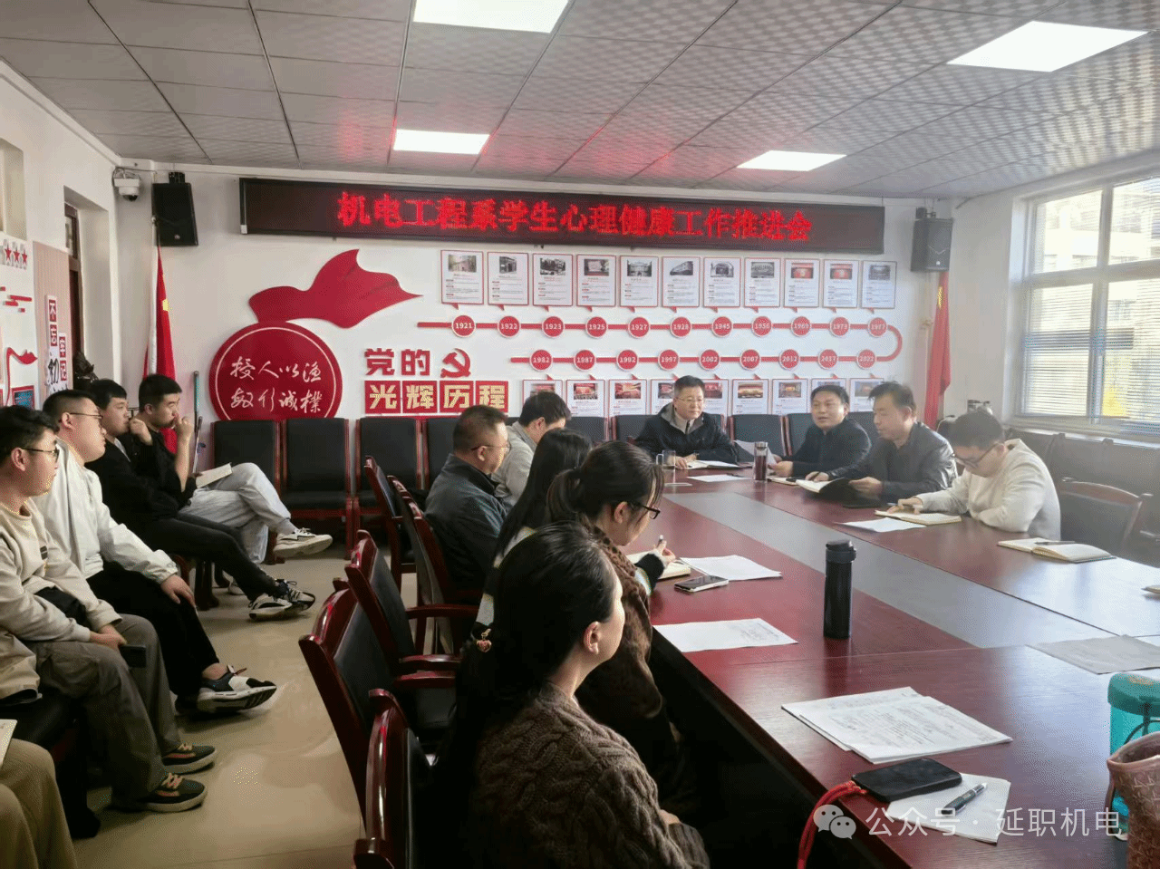2025 年 10 月 31 日下午 14:10,机电工程系召开学生心理健康工作推进会,全体学工干部、辅导员参加了会议。会议旨在压实心理健康教育责任,筑牢学生心理安全屏障。