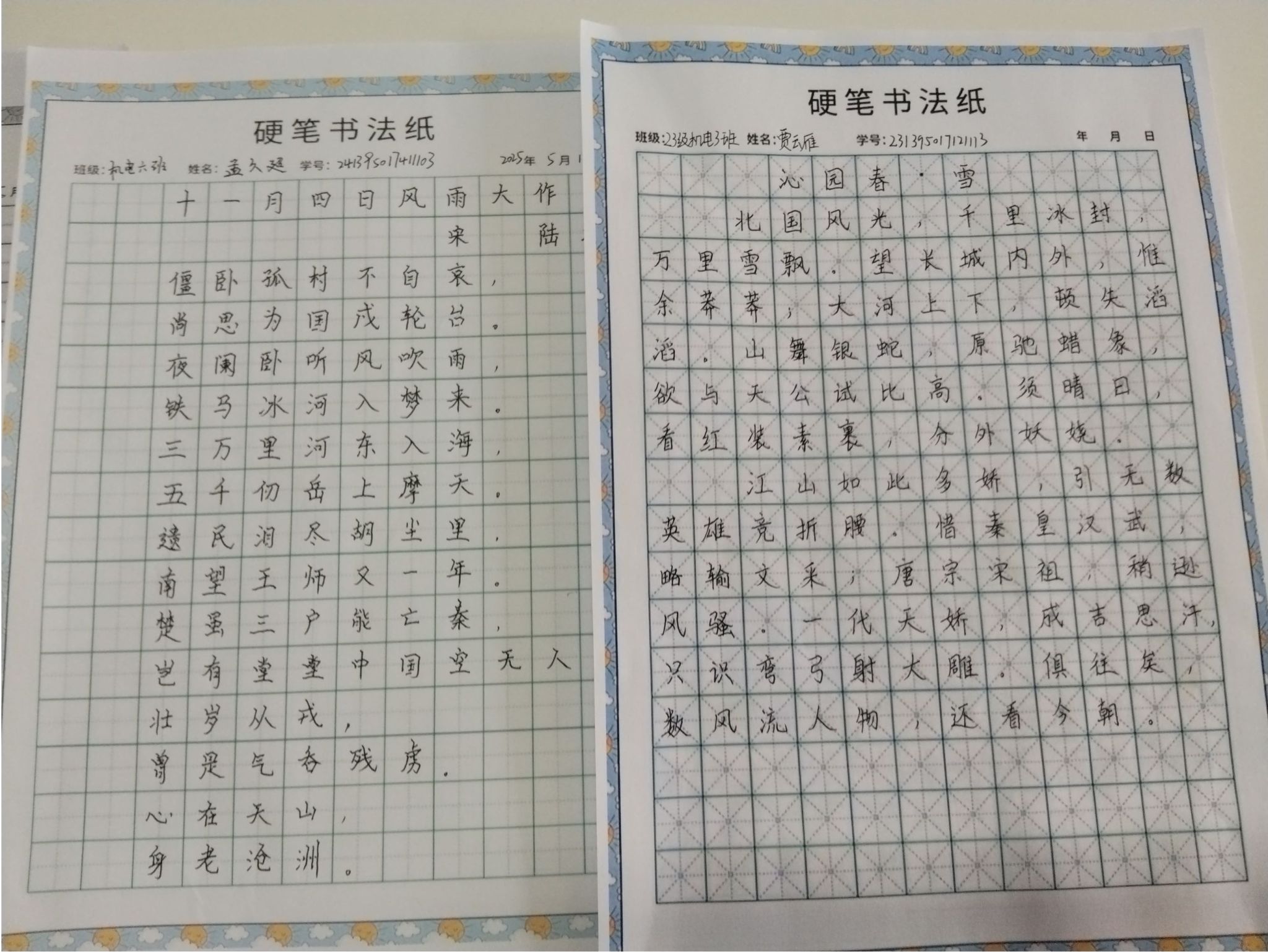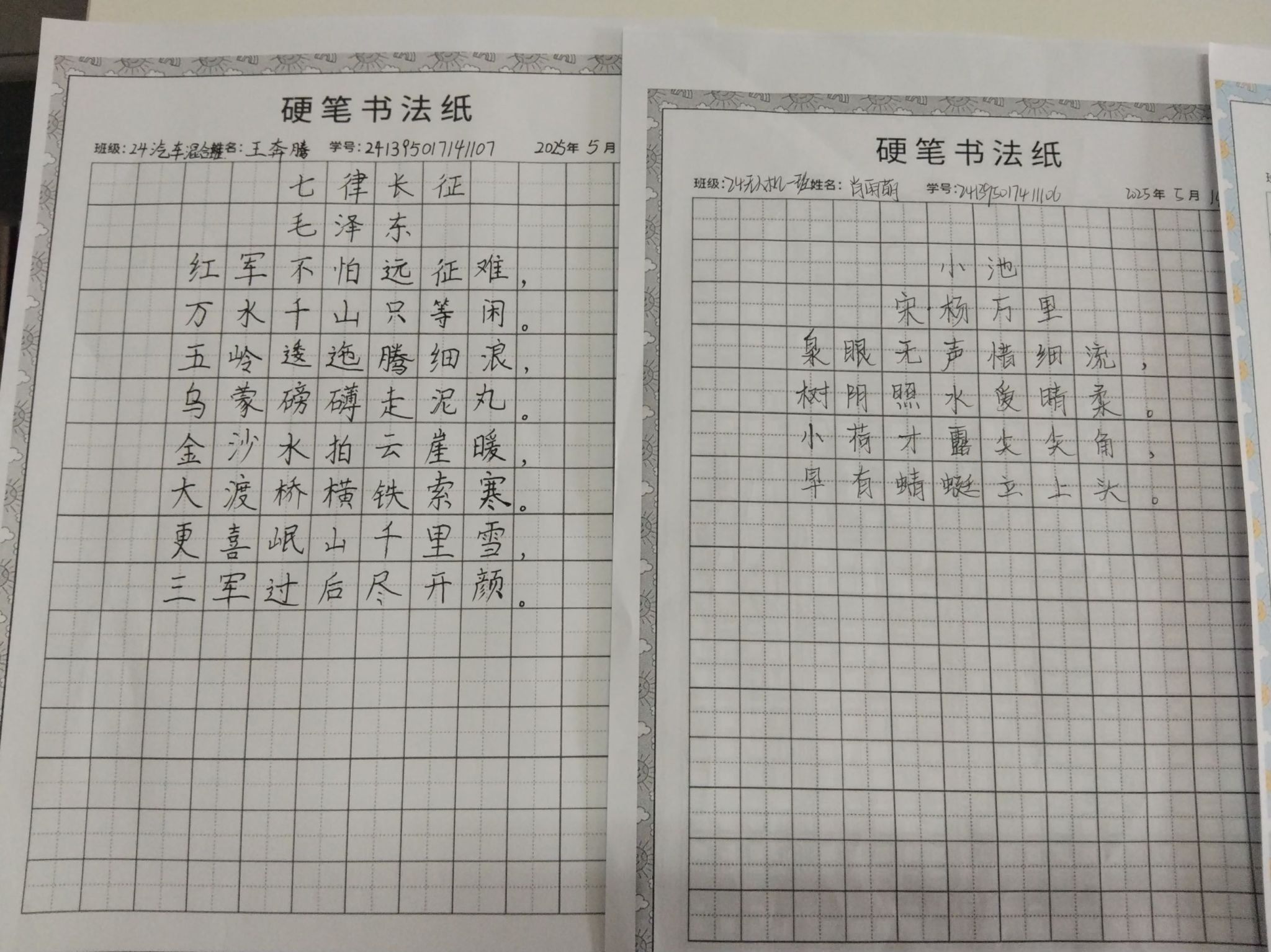 在“诵读中国”经典诵读环节,周子扬同学凭借《诗颂风华》斩获第一名;武嘉乐、尚美琪同学演绎的《不朽》荣获第二名;白洲皓、孟久超、马艺同学带来的《赓续红色血脉,续写时代华章》获得第三名,他们用铿锵有力的集体朗诵,表达了新时代青年传承红色基因的坚定信念。在"笔墨中国"汉字书写大赛中,贾云雁同学以雄浑有力的笔法书写毛泽东诗词《沁园春·雪》,荣获书写组第一名;孟久超同学以细腻工整的杜甫名篇《春望》,获得第二名;肖雨萌同学则以清新秀丽的笔触书写杨万里诗作《小池》,位列第三名。这些作品或气势磅礴,或端庄典雅,或清新灵动,充分展现了汉字书法的艺术魅力。