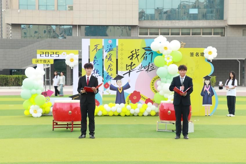 活动在激昂热烈的启程鼓乐中震撼开场,五彩斑斓的气球缓缓升空,承载着毕业生们的梦想与希望飞向远方,铿锵有力的鼓点,如跳动的青春脉搏,瞬间点燃全场氛围,也奏响了这场毕业狂欢的序章。随后,学生代表们带来精彩的歌曲演唱,《那些年》《老男孩》《这个年纪》《稻香》等经典歌曲,一曲曲动人旋律,引发全场共鸣。最后,全体学生合唱《再见》,歌声中饱含着对校园、老师和同学的不舍之情。