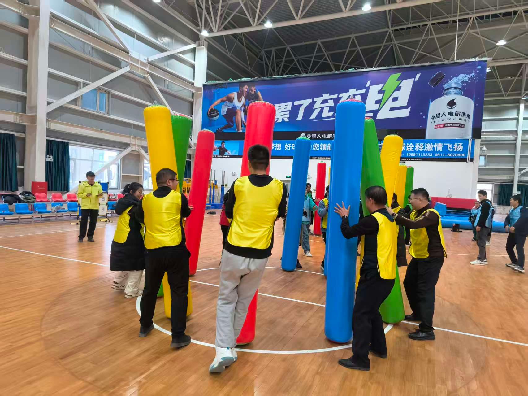 荣休仪式落幕,活力满满的团建趣味运动会随即拉开序幕。随机组建的4支队伍,围绕“旱地龙舟”“俄罗斯方块”“不倒森林”“飞盘嘉年华”等兼具趣味性与协作性的运动项目展开比拼 。