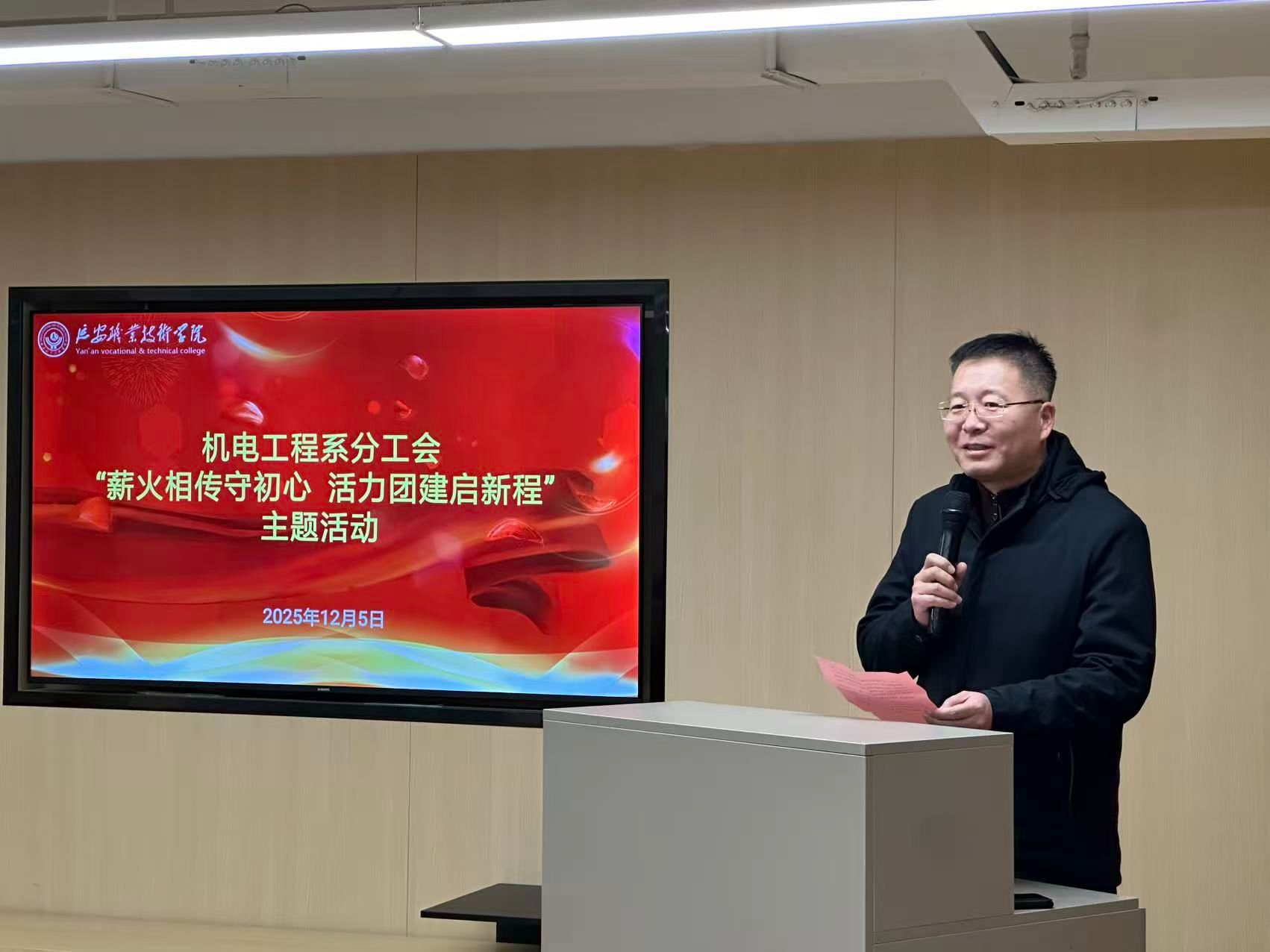 为丰富教职工文化生活,凝聚团队奋进力量,营造和谐向上的良好氛围,2025年12月5日下午13时,机电工程系分工会在金延安活动拓展区隆重举办“薪火相传守初心 活力团建启新程”主题活动,全体教职工踊跃参与,现场始终洋溢着热烈温馨的浓厚气息 。