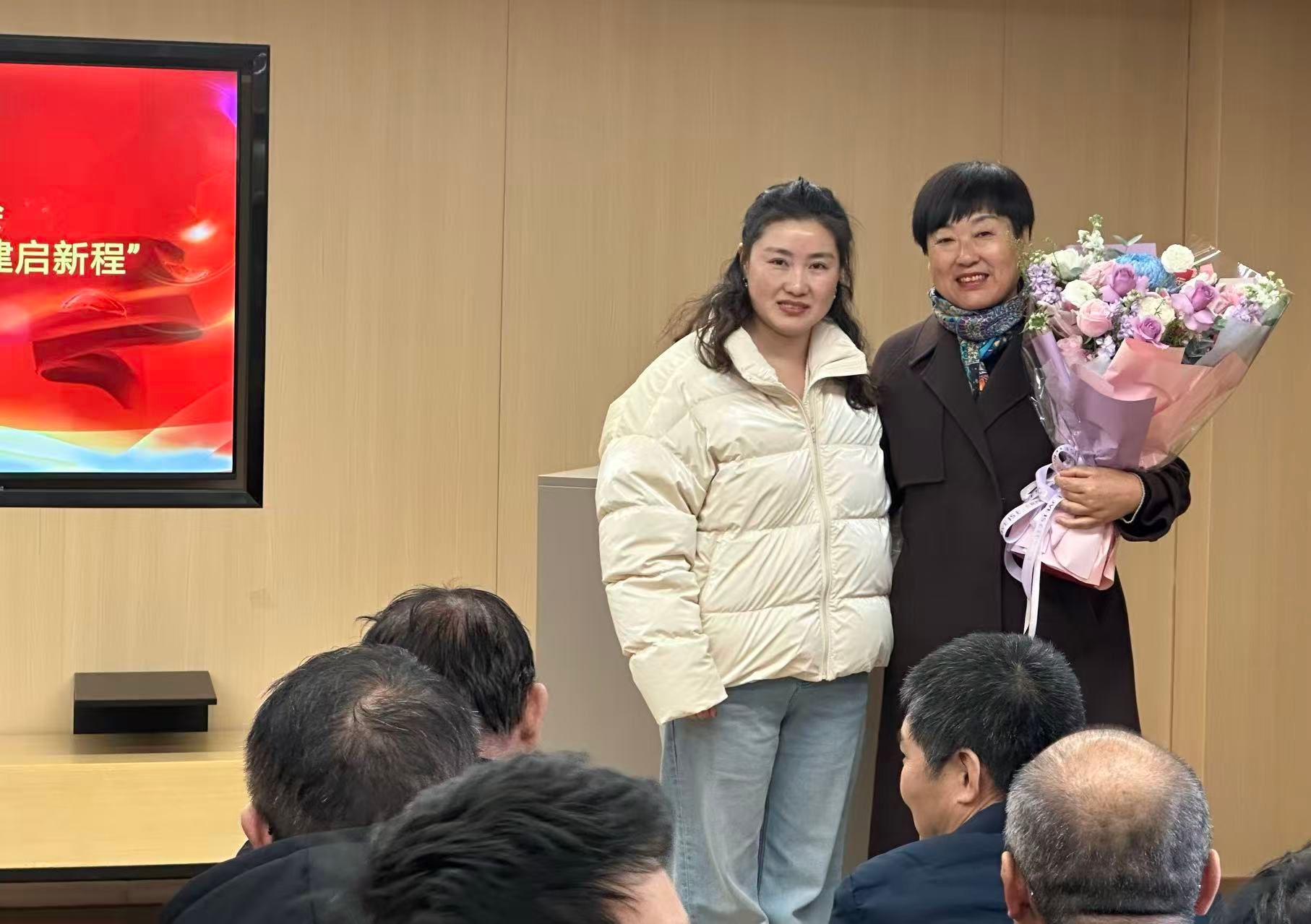 党总支书记薛强在讲话中,对曹春琴老师38年如一日潜心育人的奉献精神给予高度赞誉,充分肯定其为人才培养作出的重要贡献,并号召全体教职工以曹老师为榜样,牢记育人使命,勇担时代责任,共同推动学院发展再上新台阶 。随后,杨艳、张宇航两位老师分别代表个人与组织,向曹春琴老师敬献鲜花与定制纪念品,敬意与祝福交织,现场掌声不断,温情满溢 。