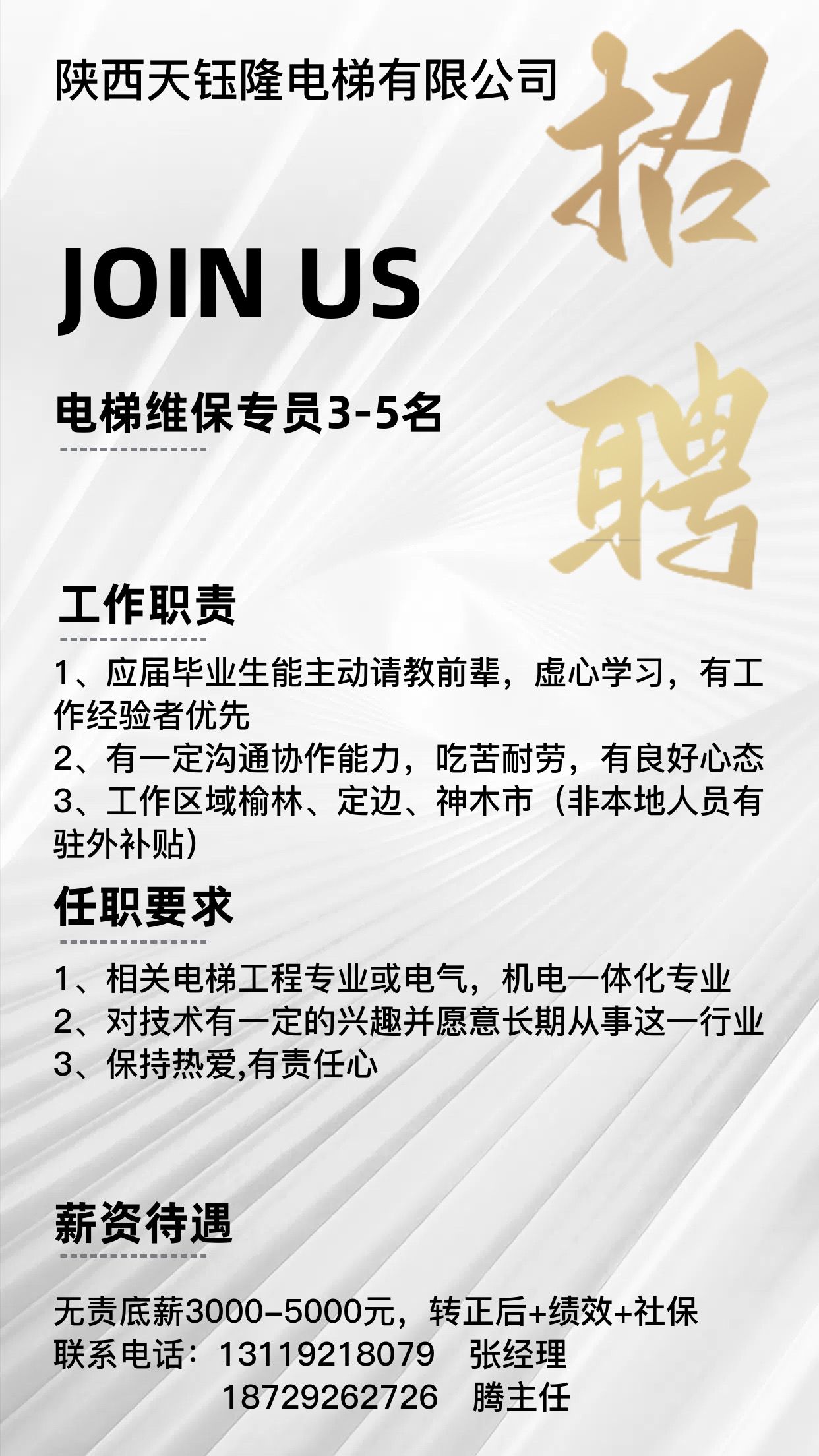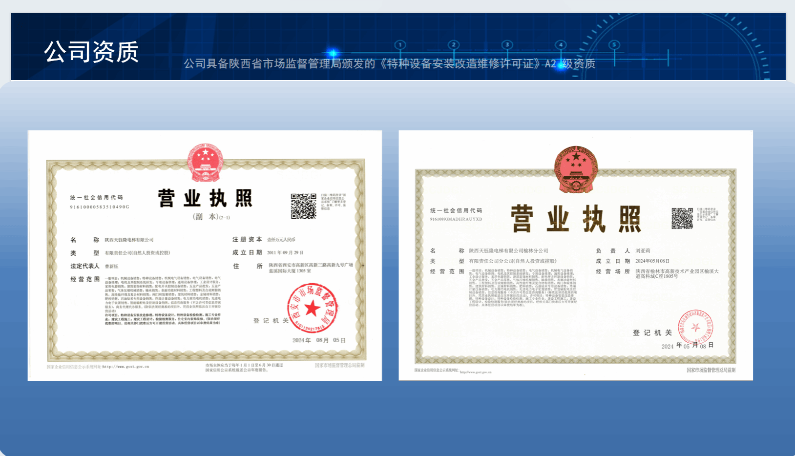 陕西天钰隆电梯有限公司成立于 2011 年 9 月,公司注册地址:陕西省西安市,注册资本金 1000 万元人民币,是一家集电扶梯销售、安装、维修保养 及机电设备安装、钢结构工程设计施工的专业公司。