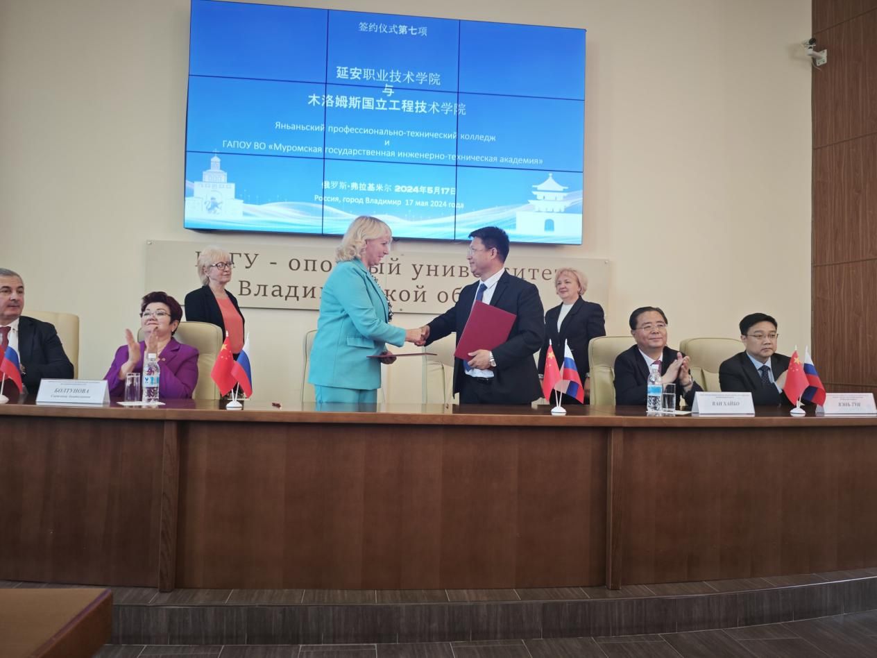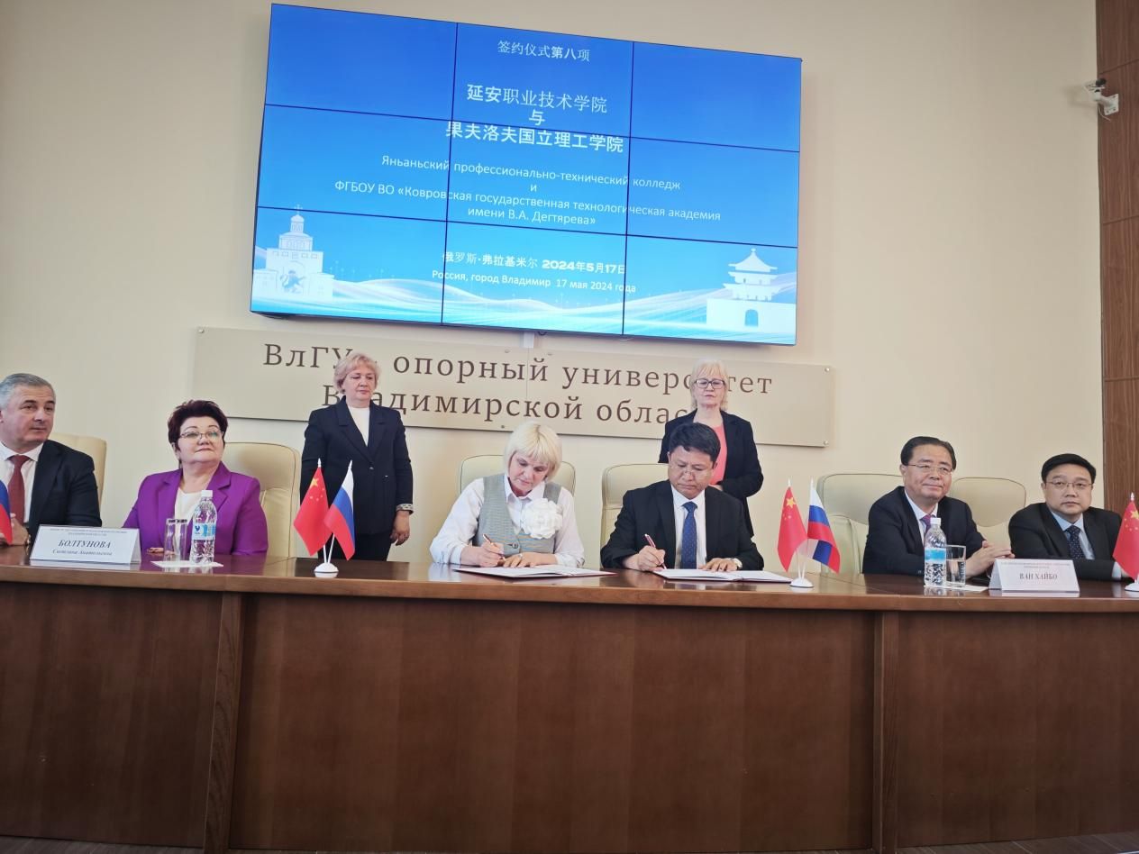 系主任李雄伟代表学院在参加2024中国(陕西)——俄罗斯职业教育产教融合“秦岭工坊”推介会暨“一带一路”职教联盟第八届国际职教论坛期间,与俄罗斯弗拉基米尔国立大学、俄罗斯木洛姆斯国立工程技术学院、俄罗斯果夫洛夫国立理工学院签约并接受俄罗斯媒体采访。
