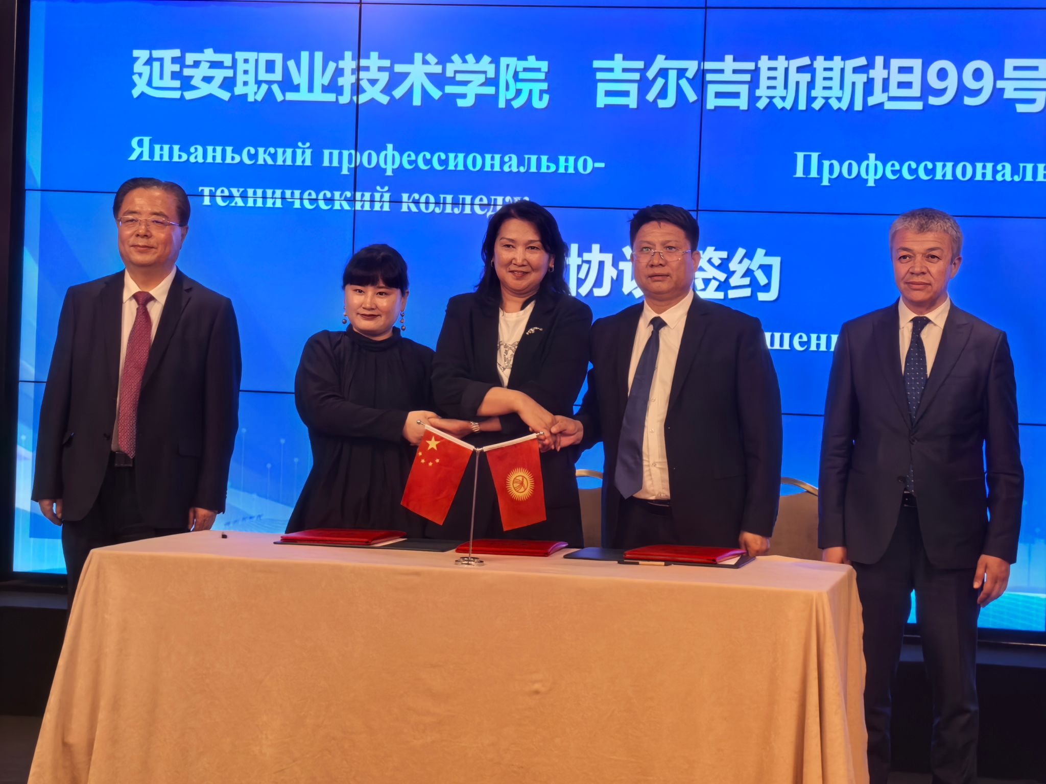 系主任李雄伟代表学院在吉尔吉斯斯坦首都比什凯克参加2024中国(陕西)——吉尔吉斯斯坦职业教育产教融合“秦岭工坊”推介会暨“一带一路”职教联盟第八届国际职教论坛。论坛期间,延安职业技术学院与吉尔吉斯斯坦99号职业技术学校签署新能源汽车的维修与保养的校校企三方合作协议,两校将继续加强沟通与交流,促成深度合作。